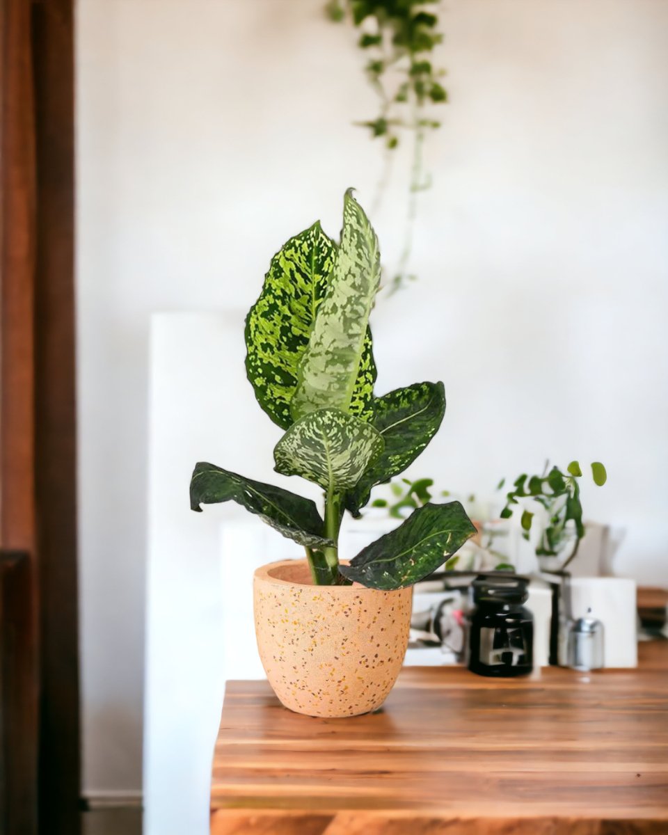 Dumb Canes are among the most popular houseplants thanks to its easy-going nature. It’s very hardy and can handle a bit of neglect. However, the best conditions for this plant to thrive would be moderate to bright indirect light and watering only when the topsoil is completely dried out.