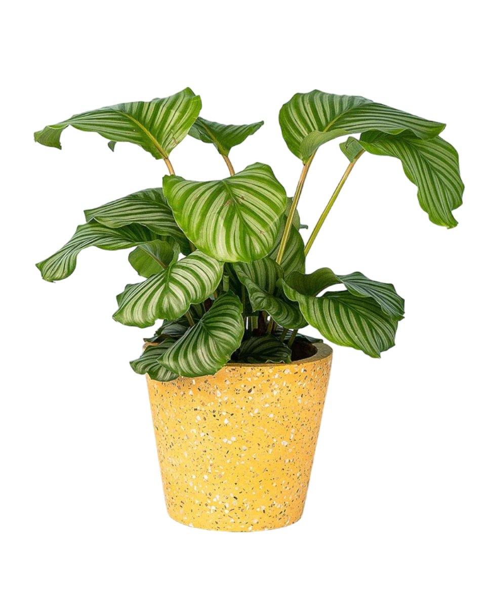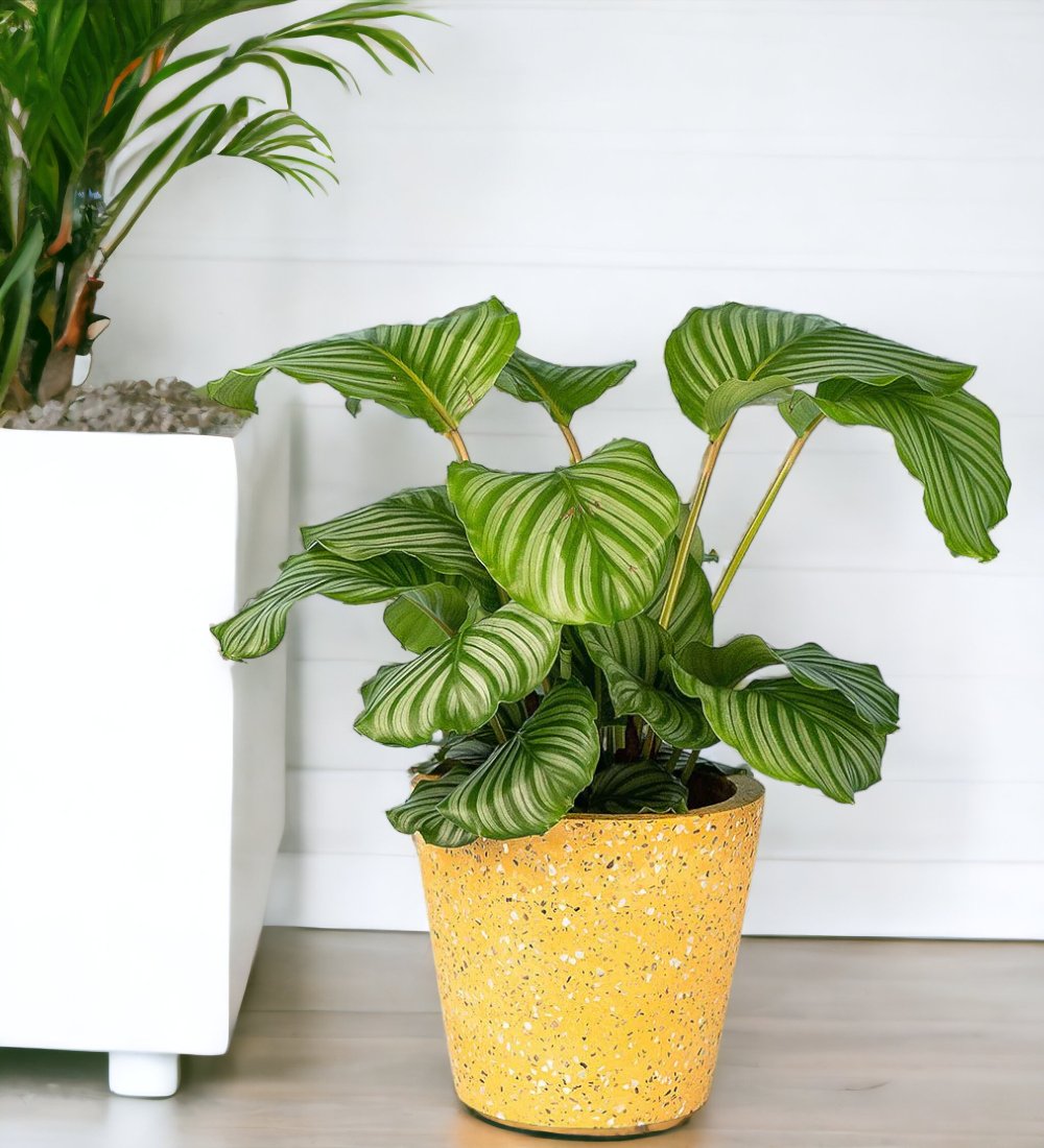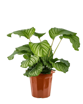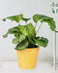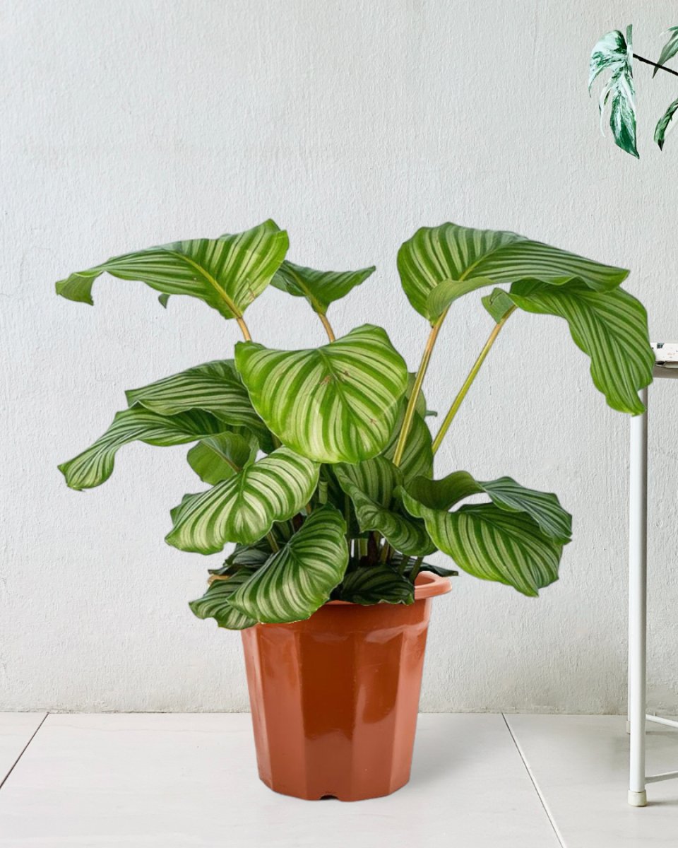 With its broad, sensational and decorative leaves, the Calathea orbifolia is one of the trendiest variety of prayer plants. It is remarkable for its enormous, silvery-green leaves with striking dark-coloured veins. Its air-purifying qualities also adds up to the reasons why this is a very in demand plant.