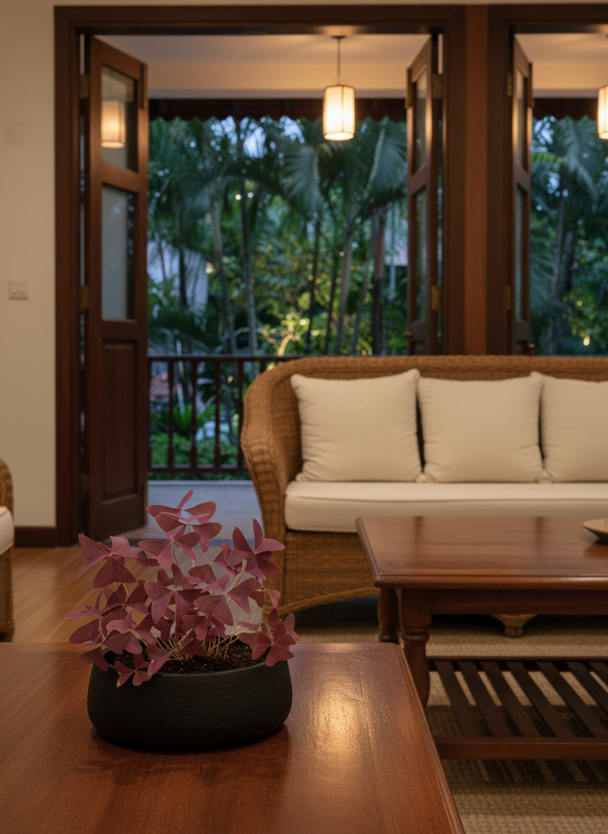 High humidity will keep your Oxalis happy. You can use a humidifier to boost humidity at home or mist it at least once a day. Placing it in a tray filled will pebbles and water will also do the trick.