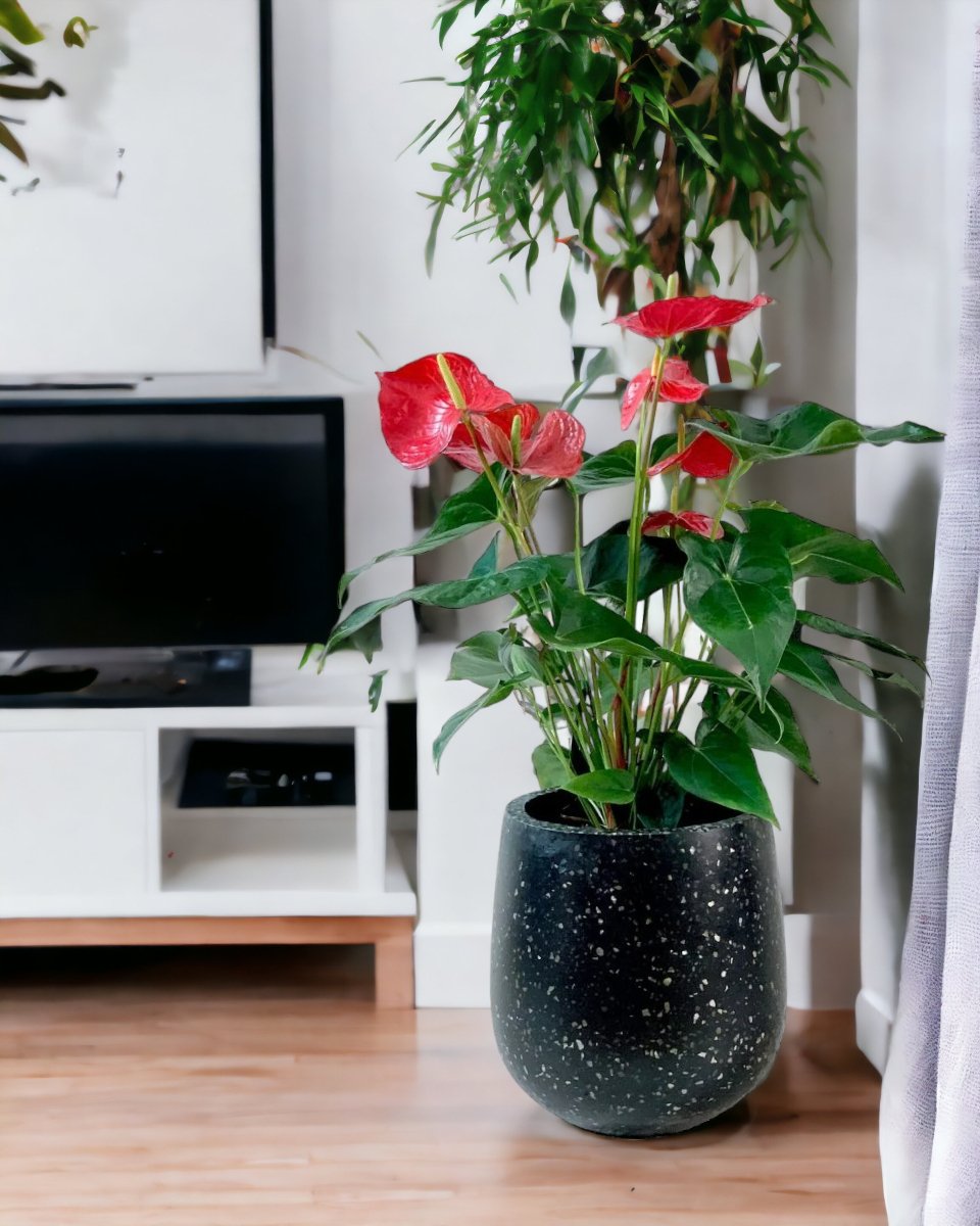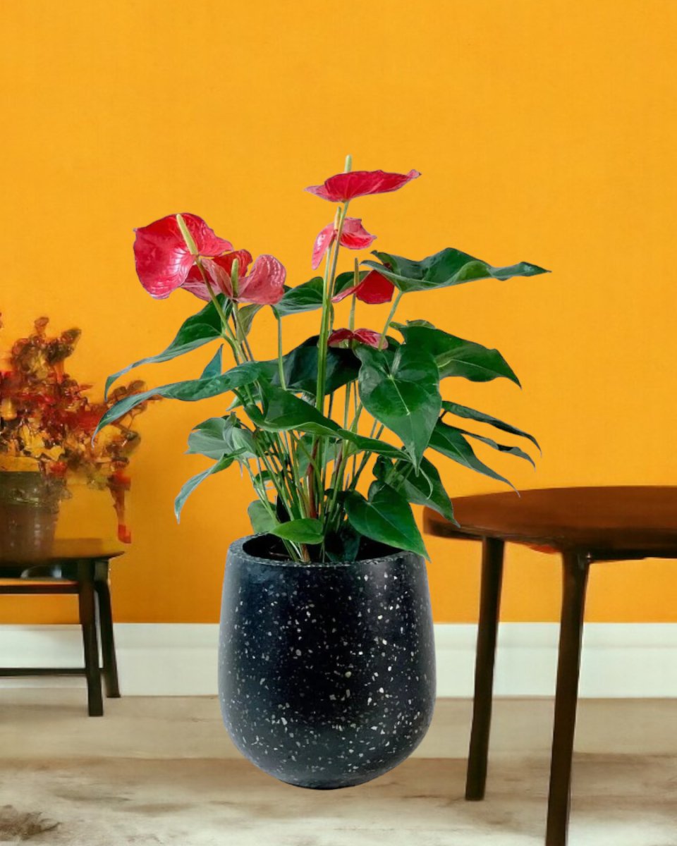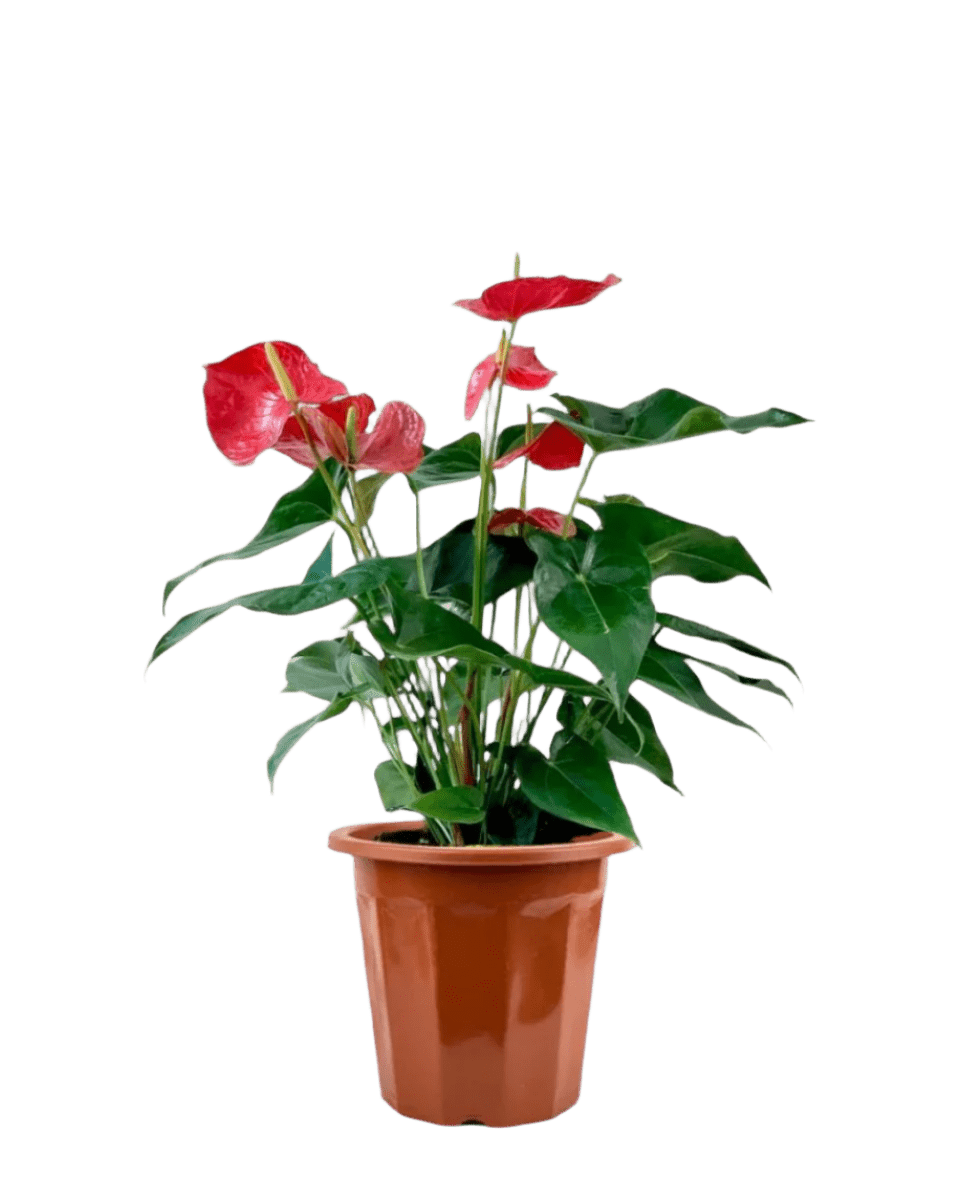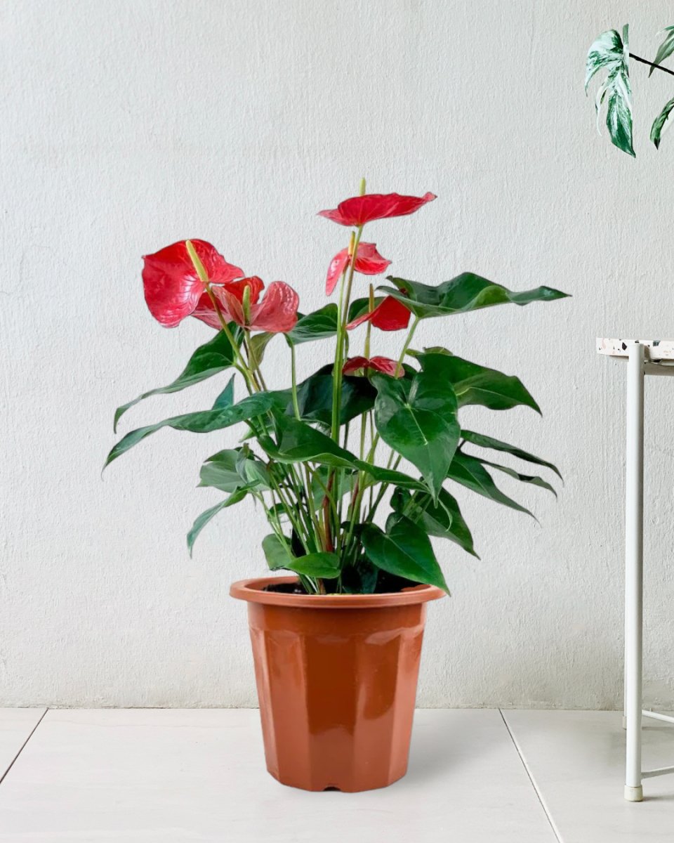 Anthurium andraeanum Red is a low-maintenance plant that requires bright, indirect light and consistently moist, well-drained soil to thrive. It is commonly grown as a houseplant, but can also be grown outdoors in warm, humid climates.