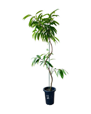 The Ficus Amsterdam King Bending, scientifically known as Ficus binnendijkii 'Amsterdam King', belongs to the Moraceae family and originates from Southeast Asia. This elegant plant is well-loved for its long, narrow leaves that create a lush, tropical feel, and its adaptability makes it a popular choice for indoor settings. The Ficus Amsterdam King thrives in bright, indirect light but is also quite tolerant of lower light conditions, making it versatile for various interior environments. In Singapore’s tropical climate, it’s best to water this plant when the top 2-3 cm of soil feels dry, typically about once a week. However, during periods of high humidity or heavy rains, reduce the watering frequency to prevent waterlogging and root rot. This easy-to-care-for plant is also known for its air-purifying qualities, helping to improve indoor air quality. The Ficus Amsterdam King appreciates consistency in care, particularly regarding watering and light exposure. It dislikes being moved frequently, exposure to cold drafts, and overwatering. While this plant adds a touch of greenery to any space, it is important to note that it is not pet-friendly and can be toxic to cats and dogs if ingested.
