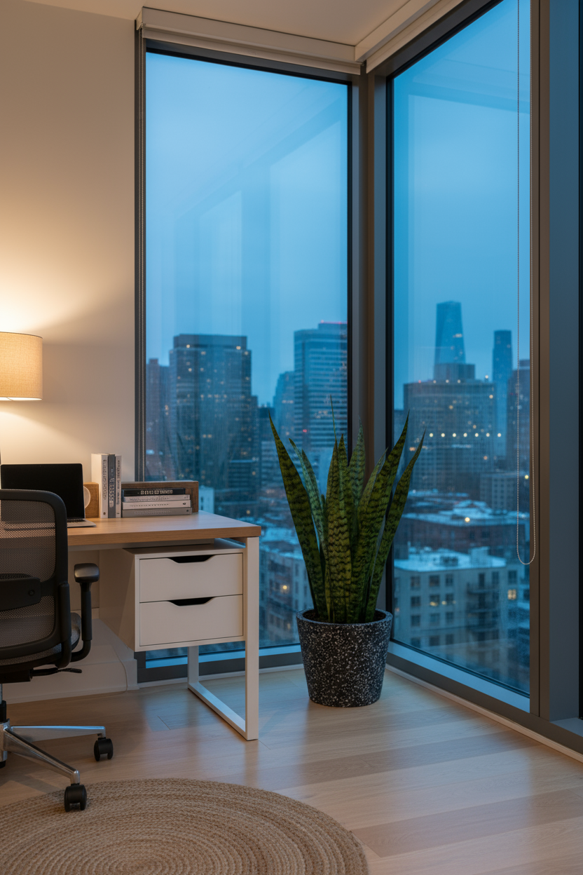 Due to its low-maintenance and air-purifying nature, the Sansevieria is a suitable plant to keep in the office. Slow-growing and tolerant of neglect, the snake plant can last for many years indoors.