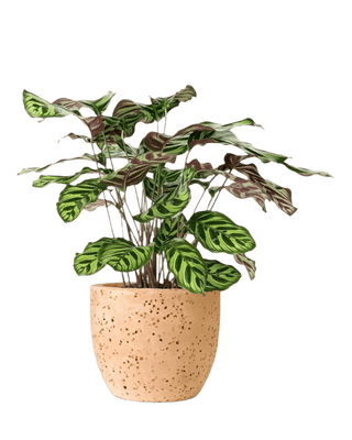 Also called Cathedral Windows, the Peacock Plant is a beautiful tropical houseplant known for its exquisite feathered effect of contrasting green and purplish-red colours from the middle of the leaf to the outer edges. It has the elegance and splendour of a Peacock’s tail, hence the name.