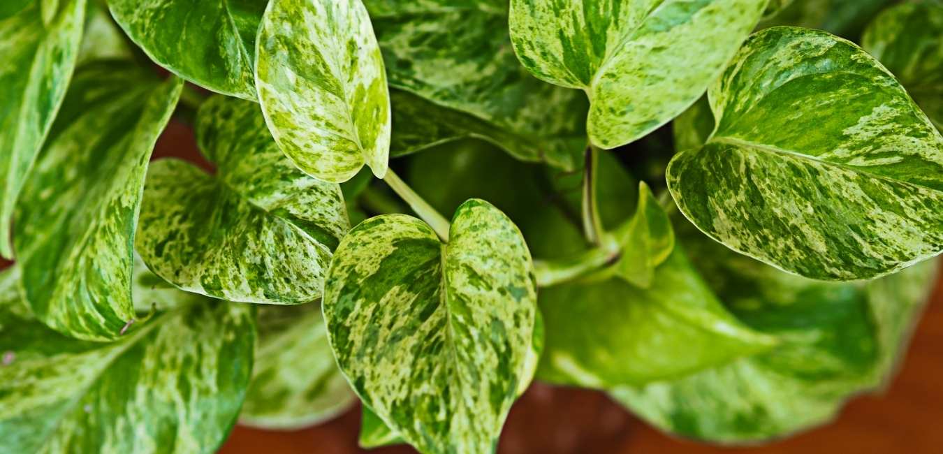Variegated Pothos including Golden Pothos, Pothos N’Joy and Marble Pothos require more light than regular ones to keep their variegation.
