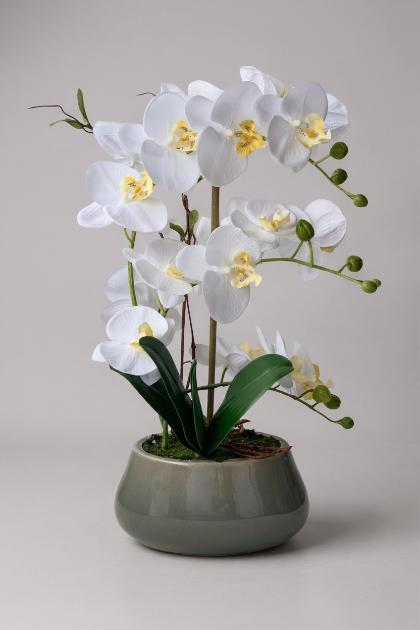 - Phalaenopsis Orchid in a 11cm(L)x28cm(W)x42(H)cm ceramic planter.