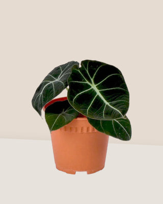 Destined for the high life, the Alocasia Black Velvet is a plant equivalent of royalty. With its dark and velvety foliage contrasted with silvery veins, it is easy to see why its name, Alocasia reginula, literally means “Little Queen”.