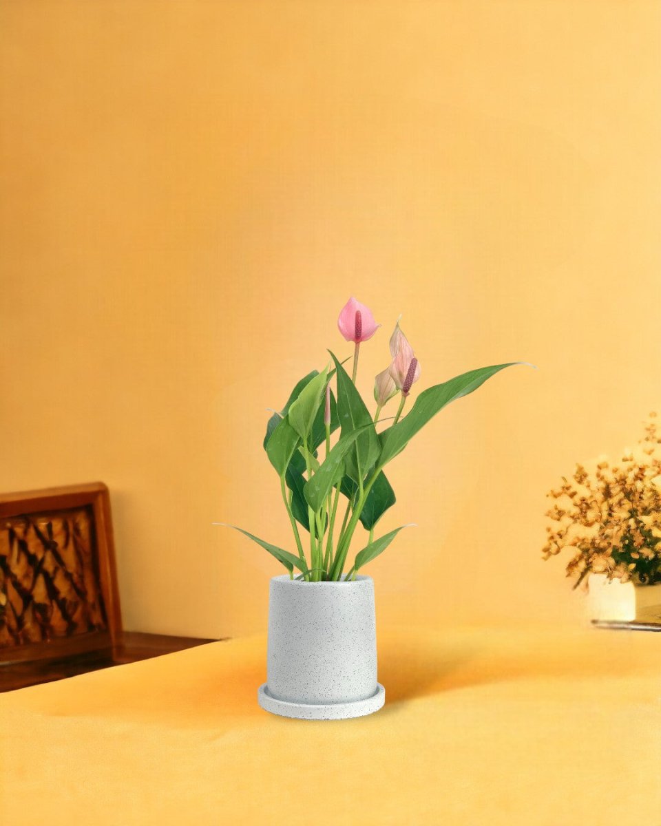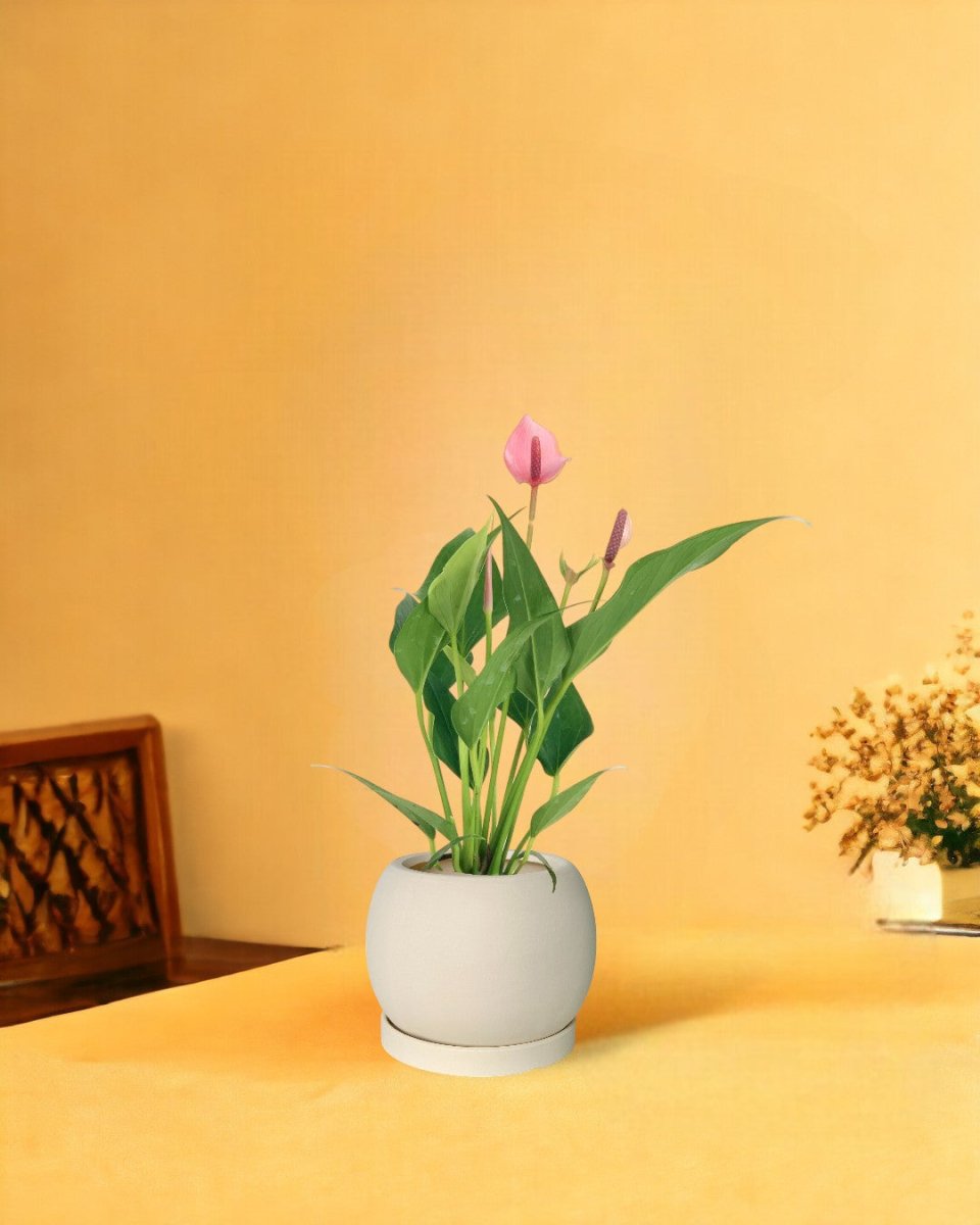 The Anthurium Lilli Pink, a captivating variety of Anthurium andraeanum, boasts stunning pink, heart-shaped flowers and glossy green leaves, making it a delightful addition to indoor spaces. Belonging to the Araceae family, this plant is native to the tropical regions of Central and South America.