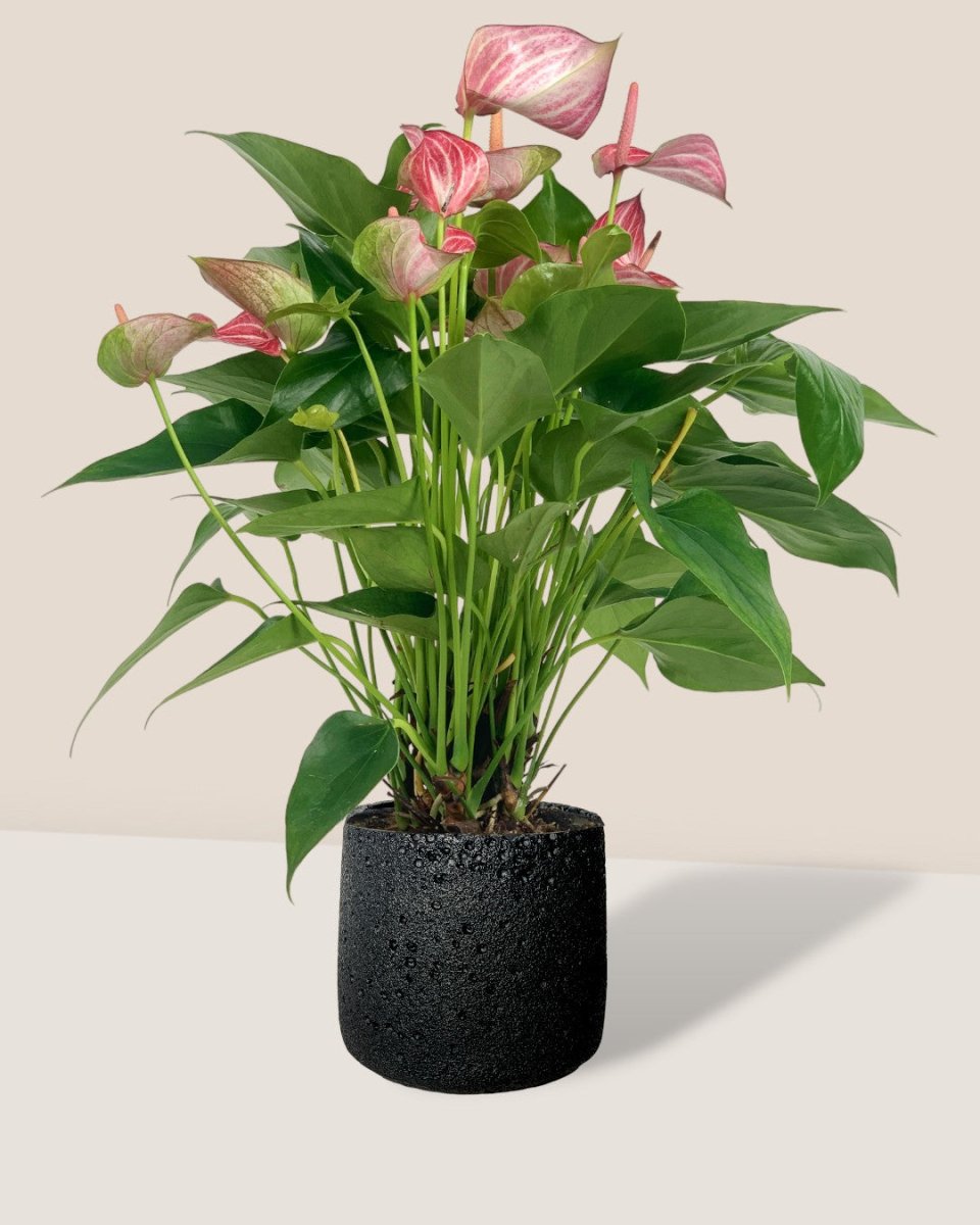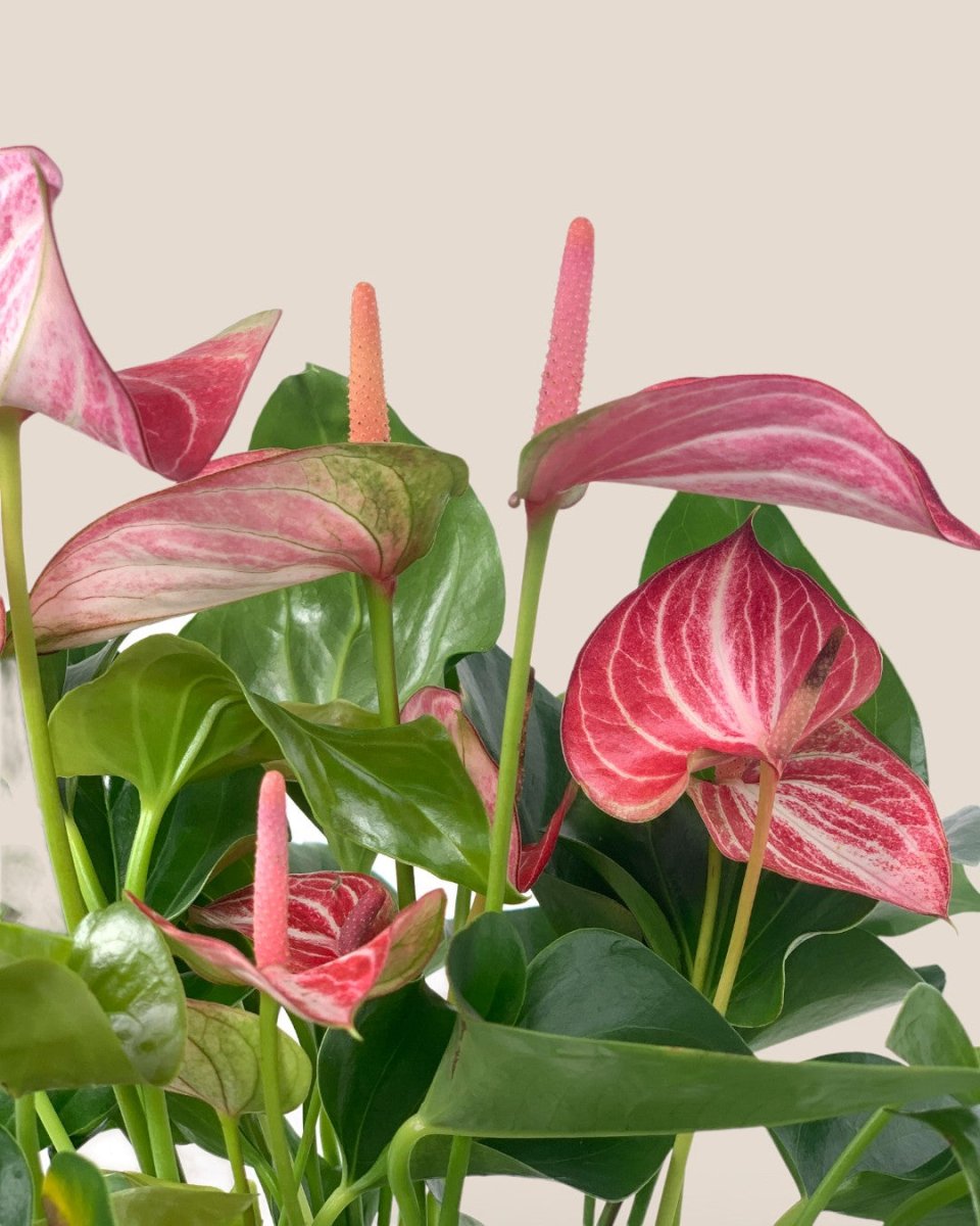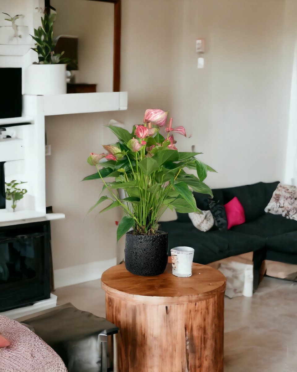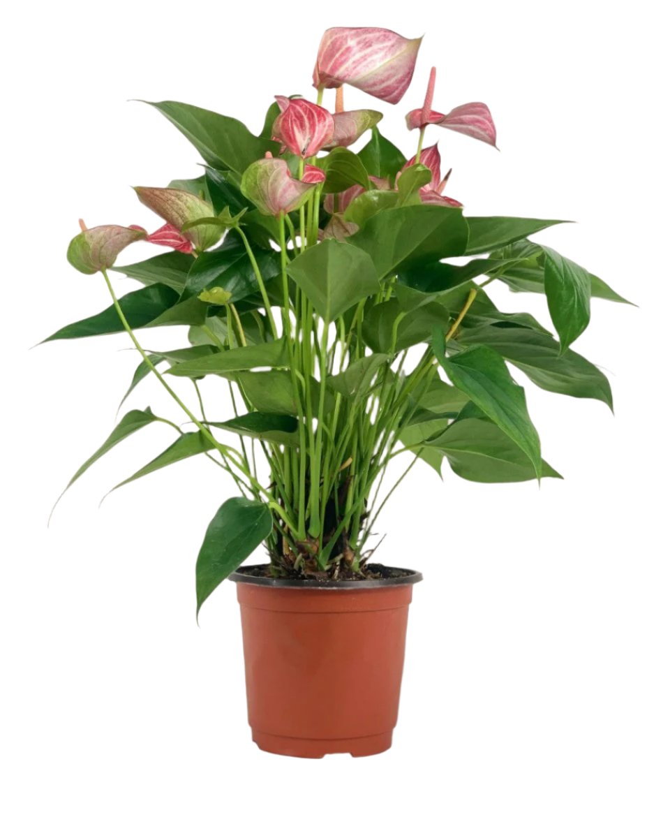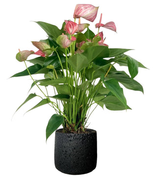 The Anthurium Mystique Pink, also known as the Flamingo Flower, is a captivating tropical plant that adds a touch of elegance to indoor spaces. With its lush, glossy foliage and striking pink spathes, this Anthurium variety is sure to be a focal point in any room. To ensure its optimal growth and vibrancy, provide bright, indirect light, avoiding direct sunlight. Keep the soil consistently moist but not waterlogged, watering when the top inch of soil feels slightly dry. Anthuriums thrive in high humidity, so consider misting the plant regularly, especially in drier indoor environments. Maintain a warm environment between 65-80°F (18-27°C) for its well-being. Fertilize with a balanced liquid fertilizer every 4-6 weeks during the growing season (spring and summer). This tropical gem prefers indirect bright light, consistent moisture without waterlogging, and high humidity but dislikes direct sunlight and overwatering. Adding the Anthurium Mystique Pink to your indoor plant collection not only brings beauty but also contributes to a healthier living space with its air-purifying qualities. Keep in mind these care tips to ensure its well-being and enjoy the charming presence of this elegant plant in your home.