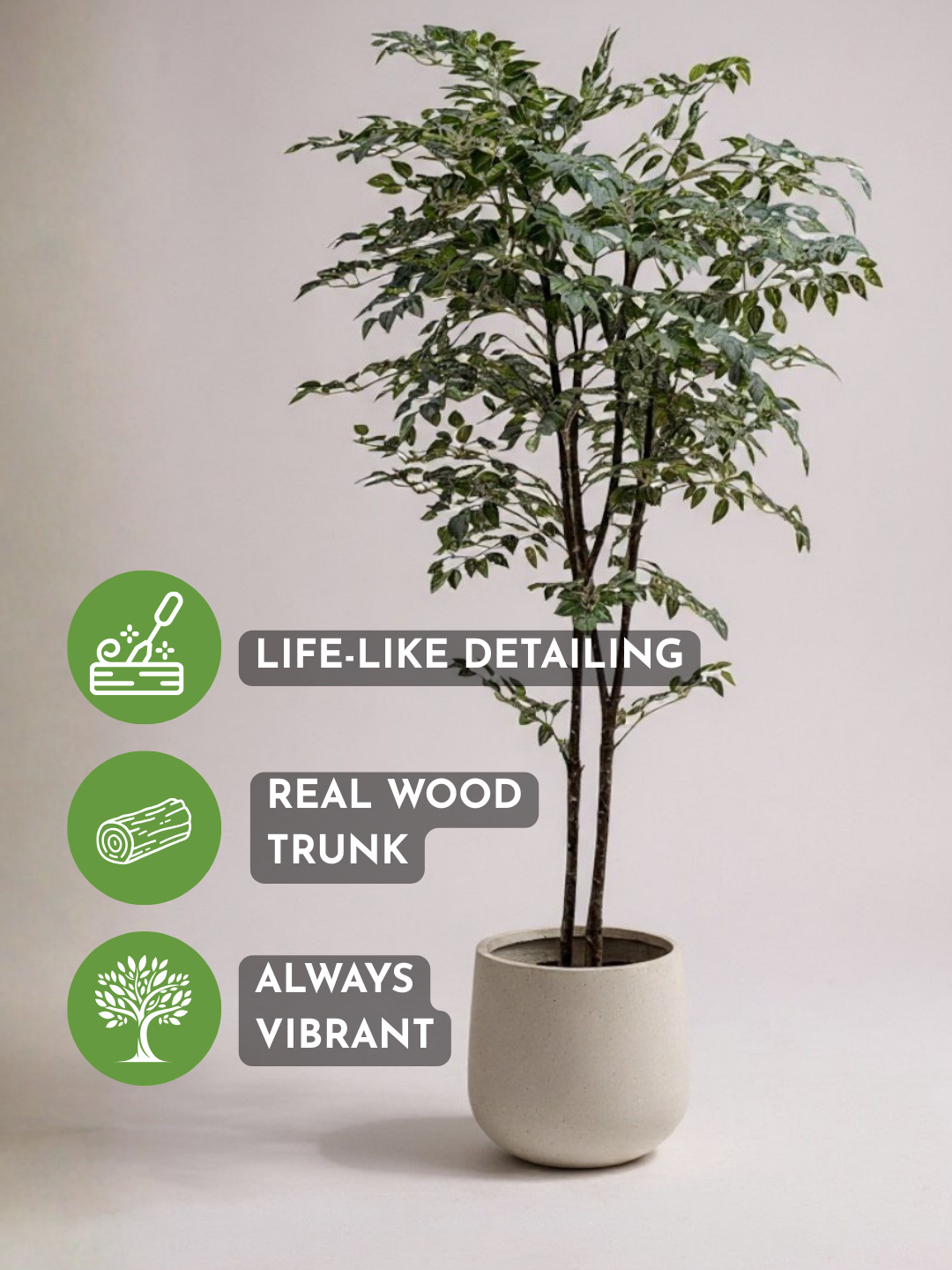 • Real tree trunk with premium artificial foliage