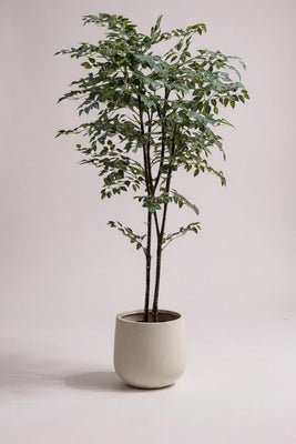 Natural elegance, zero maintenance. Banyan Tree - Real-Trunk Artificial brings a sophisticated, organic presence to any space—minus the watering and sunlight. Crafted with authentic tree trunks and delicately textured foliage, this statement plant seamlessly blends into modern interiors, from boutique shops and cafes to stylish living rooms. Whether styled in a minimalist corner or as a biophilic feature, it offers timeless greenery that stays vibrant year-round. atmosphere.