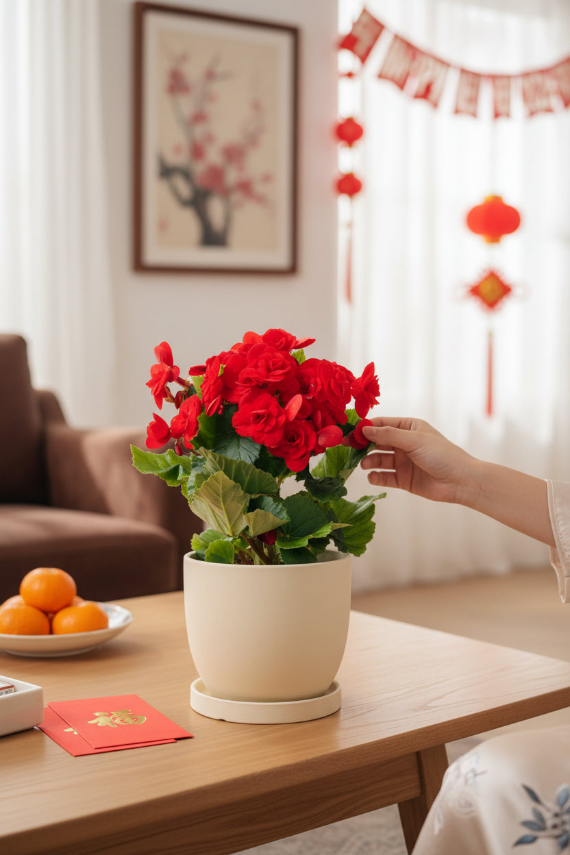 The Begonia Rose is cherished for its full, rose-like blooms and compact form — a classic festive plant symbolising joy, celebration, and prosperity during Chinese New Year. Bright and cheerful, it adds an instant festive lift to homes, offices, and gifting moments.