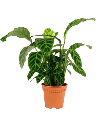 As a houseplant, Calathea zebrina thrives in warm and humid conditions. Water it regularly, and keep the soil moist but not waterlogged. You can place it in bright, indirect light to maintain vibrant foliage. It's non-toxic, making it safe for households with children and pets. Enjoy its beauty and add a touch of exoticism to your indoor space.