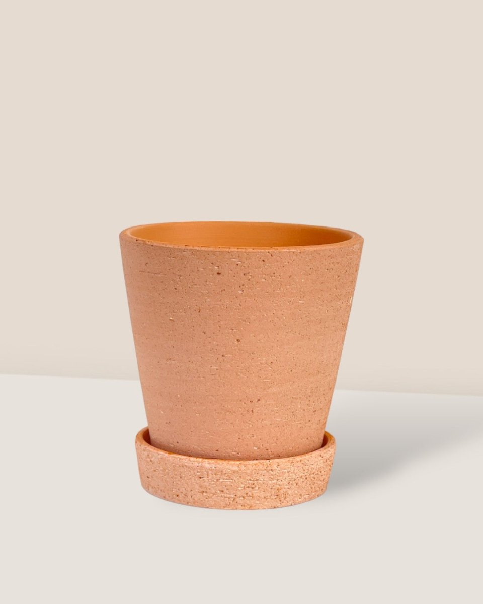 Terracotta is crafted from natural clay fired at lower temperatures than other ceramics, giving it a unique ‘breathable’ quality. This allows both water and a small amount of air to pass through the walls of the pot, helping moisture evaporate from the soil and reducing the risk of root rot.