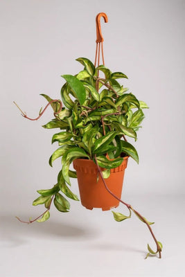 Transform your space with this gorgeous Hoya Carnosa Variegated, a captivating houseplant that combines beauty with easy care. This stunning variety features thick, waxy leaves adorned with creamy white and green variegation that creates a striking visual display.