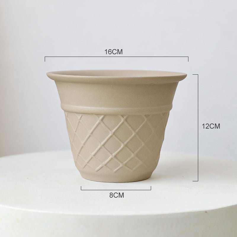 Bring a touch of fun to your home with the Ice Cream Cone Pot — a handcrafted ceramic planter with a beautifully textured. Each piece is carefully made and painted by hand, making every pot unique. Its simple, modern design blends effortlessly into any interior or outdoor space, while the natural imperfections add character and warmth.