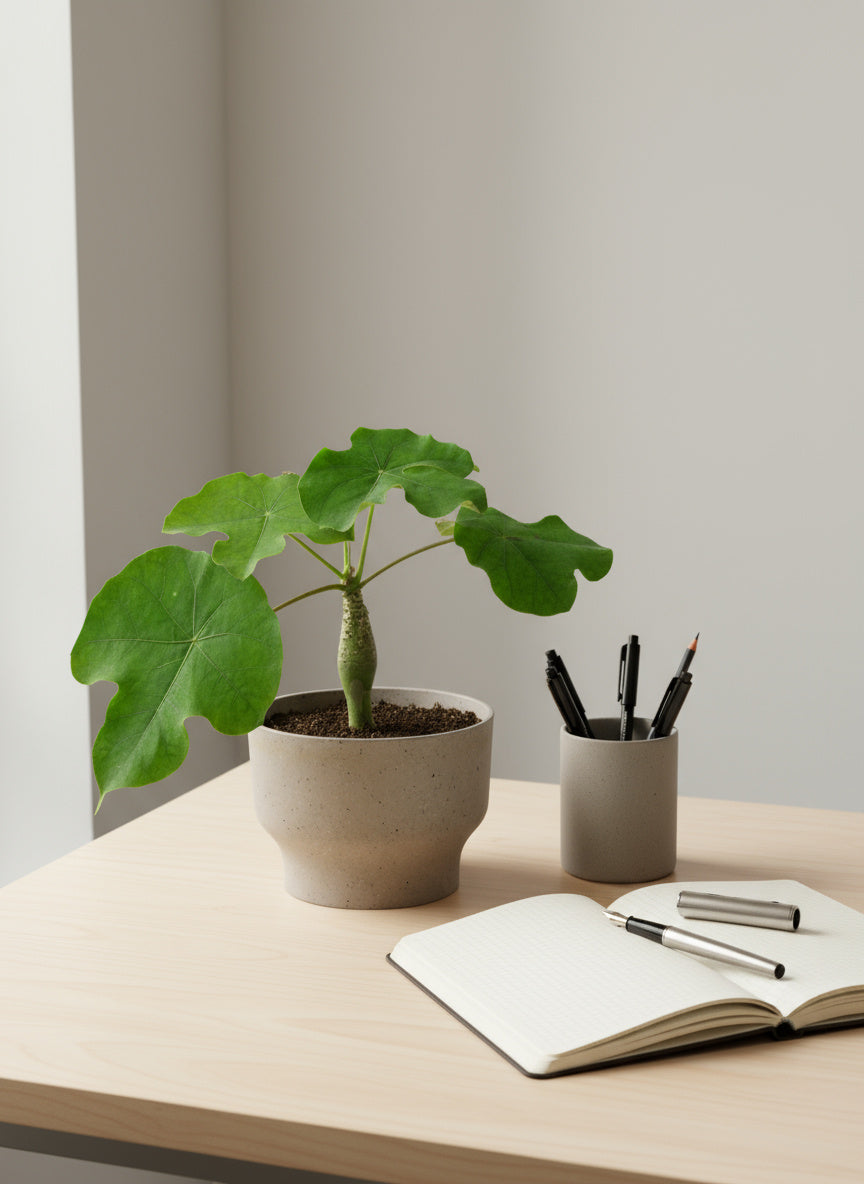 Unique swollen stem (caudex), bright coral-red flowers, drought-tolerant, can be grown indoors and outdoors |