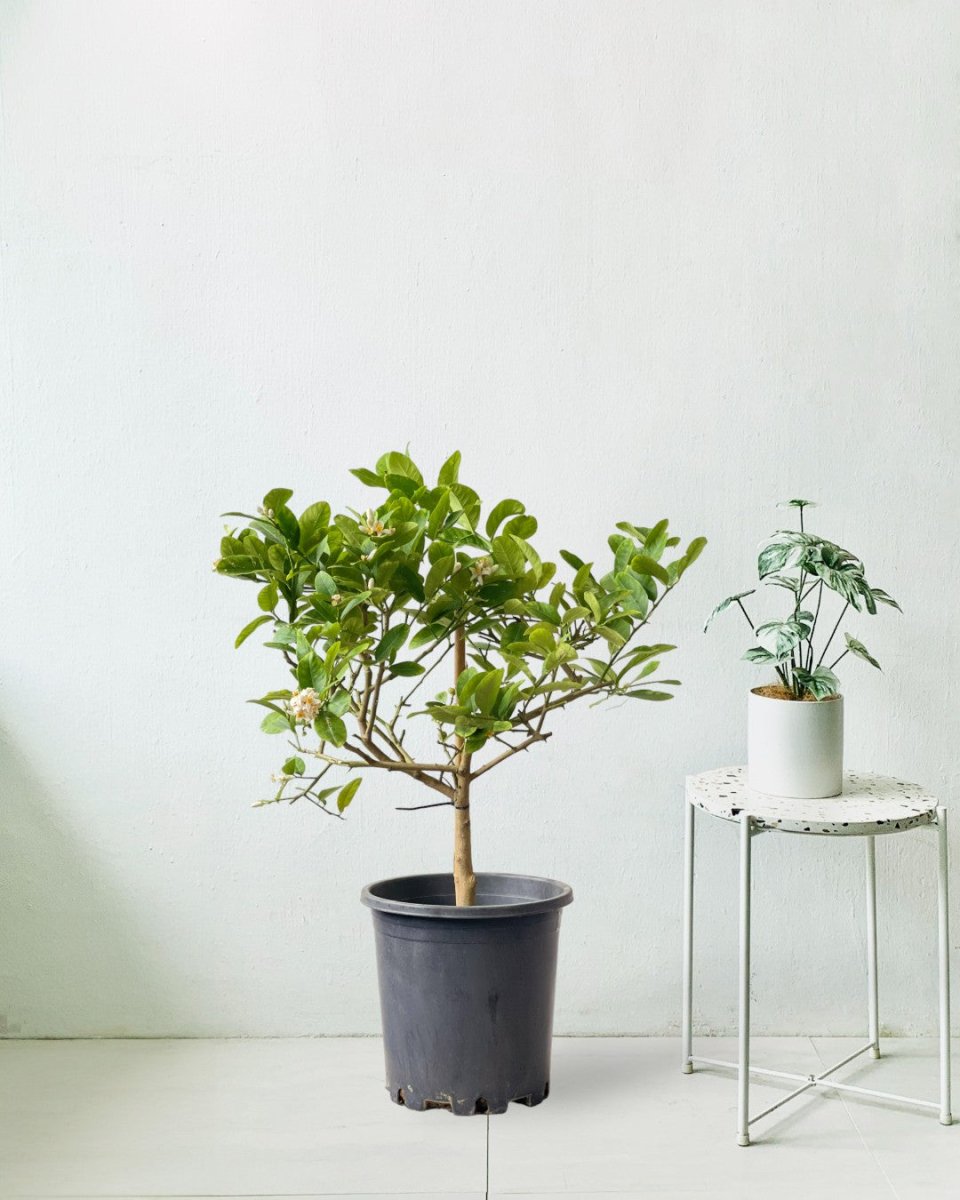 The lemon tree (Citrus limon) is a compact evergreen known for its glossy leaves and fragrant white flowers. Its vibrant yellow lemons are visually appealing and prized for their refreshing taste and culinary versatility. Ideal for smaller gardens, patios, or indoor cultivation, this tree brings citrus joy to any space, offering beauty and the potential for homegrown lemons year-round.