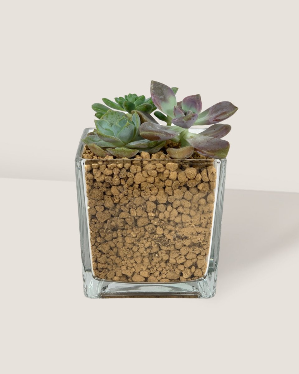 The glass cube planter is a versatile and stylish choice for your favorite hydro culture plants or succulents. Its transparent design showcases the plant's roots, creating a visually appealing display. The cube shape adds a modern and sleek touch to any space, making it a perfect centerpiece or accent piece for your home or office. With its sturdy glass construction, this planter provides a stable and secure environment for your plants to thrive. Whether you prefer the elegance of hydro culture plants or the charm of succulents, this glass cube planter offers a beautiful way to showcase their natural beauty and adds a touch of sophistication to any setting.