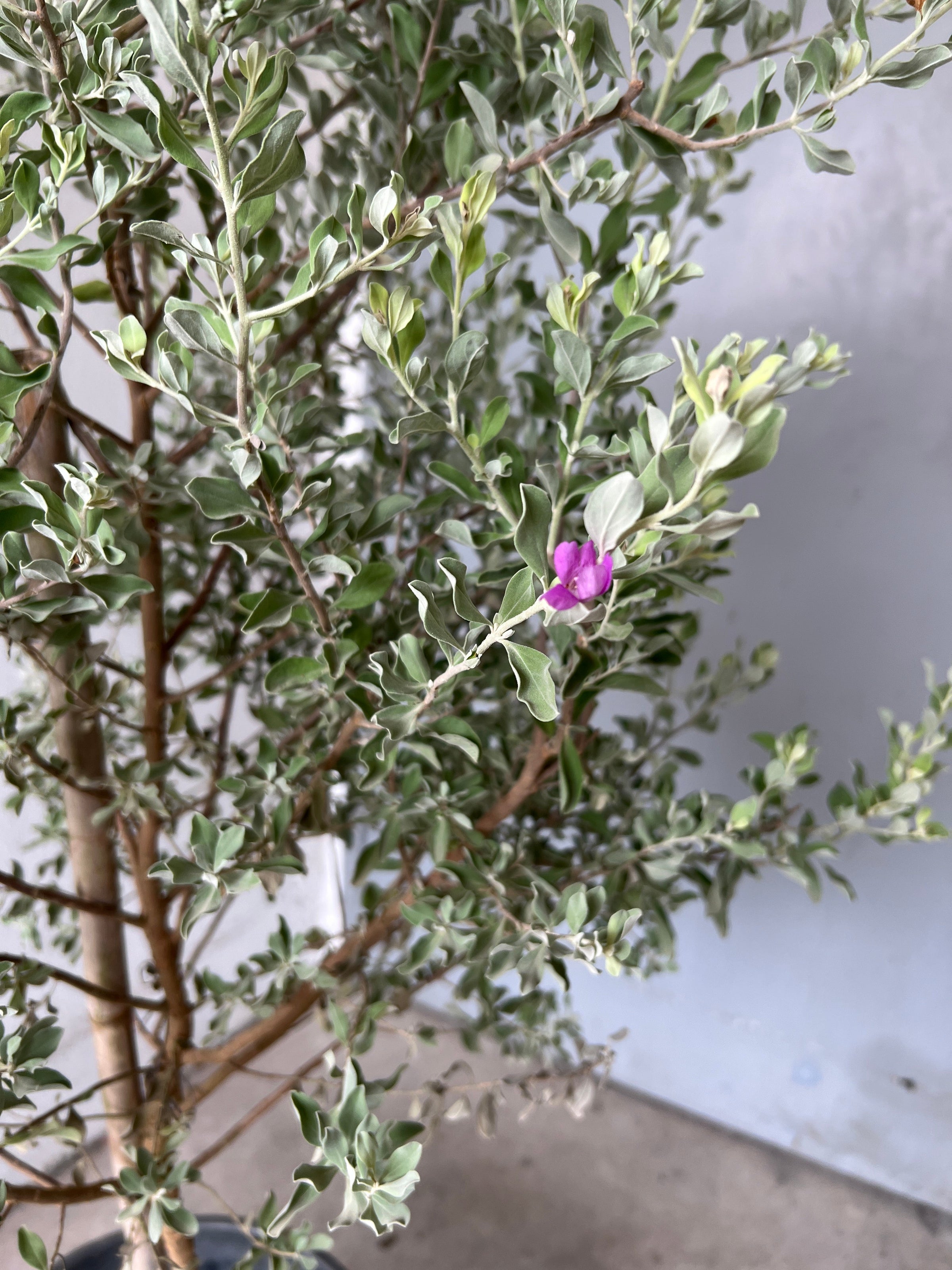 The Texas Sage is a striking ornamental shrub known for its silvery foliage and bursts of purple blooms that appear after rain or humidity — earning it the nickname Barometer Bush. Its soft, velvety leaves shimmer under sunlight, creating a calming, silvery-green tone that complements modern, coastal, or Mediterranean-inspired spaces.