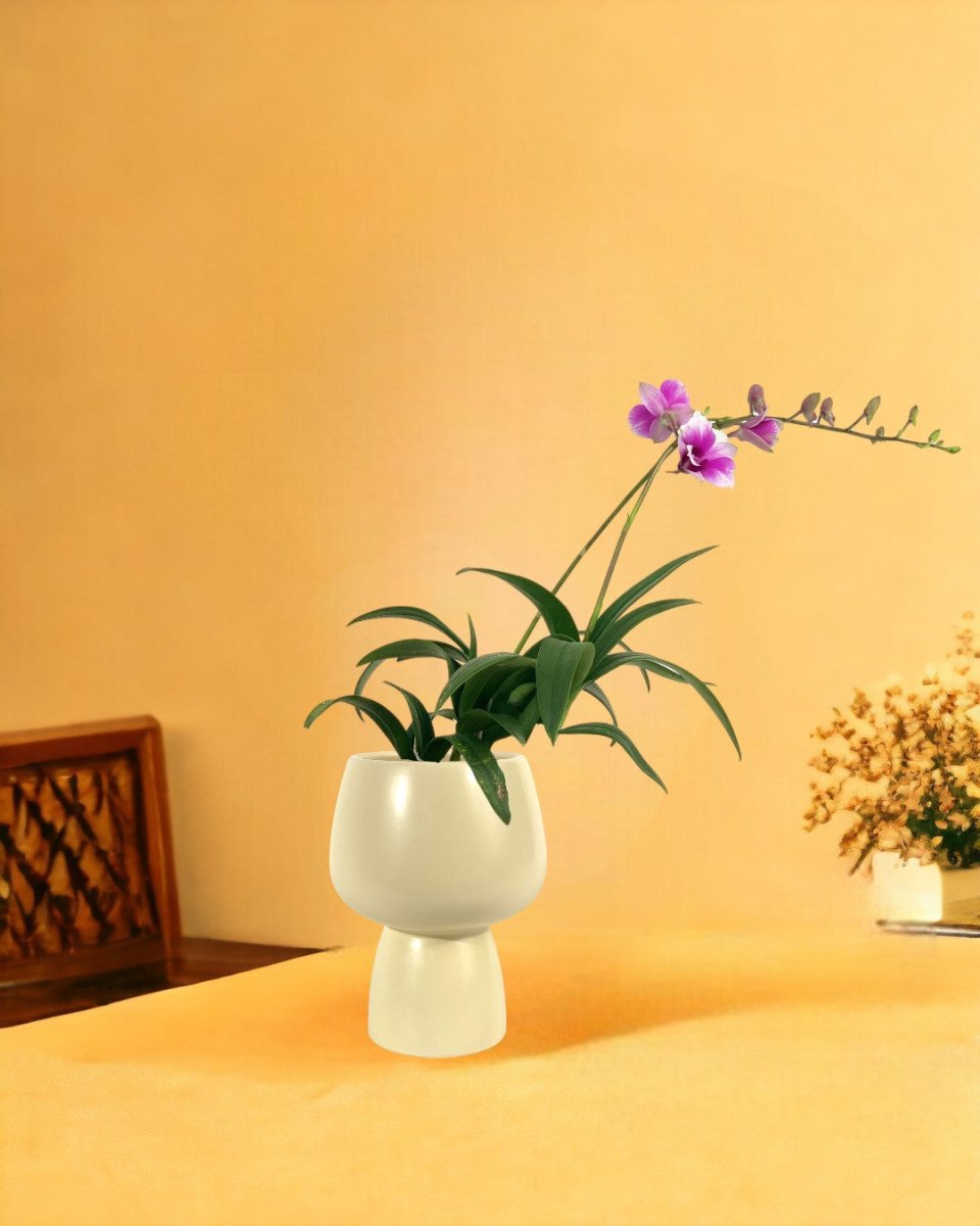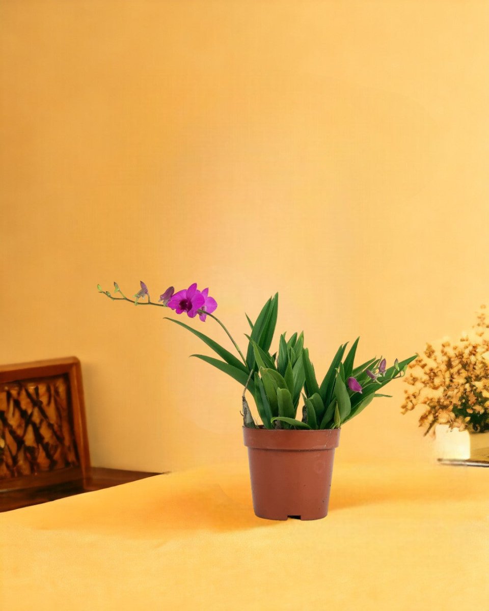 In terms of care, providing adequate light is crucial for the healthy growth and flowering of the Mini Orchid, and it generally prefers bright, indirect light. The growing medium should be consistently moist to avoid waterlogging, and watering is recommended when the top inch of the medium is slightly dry. Thriving in a humid environment, the Mini Orchid benefits from regular misting or placement in a humid location, and it is well-suited for typical indoor temperatures.