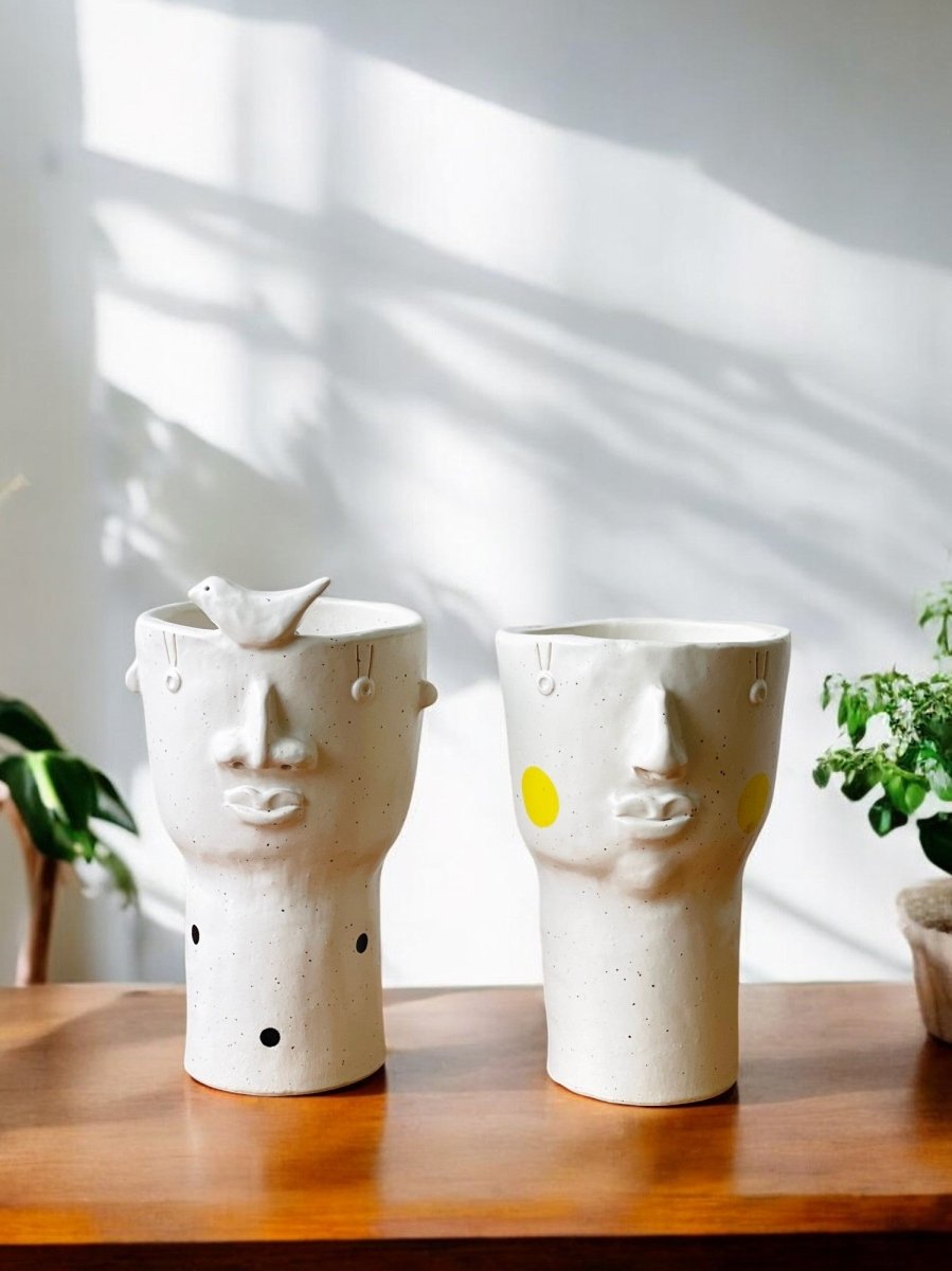 From our premium range, these beautiful quirky ceramic plant pots are designed and handmade in Bangkok by a Thai artist.