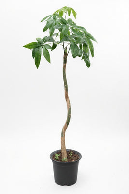 This exotic Money Tree (Pachira aquatica) stands out with its beautiful bottle-shaped trunk and elegant height, giving it a sculptural, almost bonsai-like presence. Its thick, swollen base naturally stores water — a symbol of resilience and good fortune in many cultures.