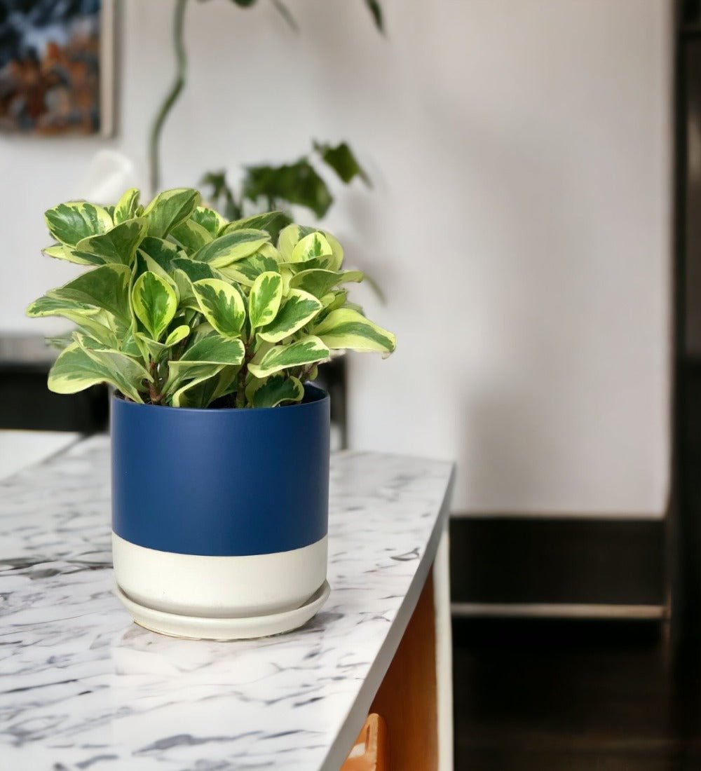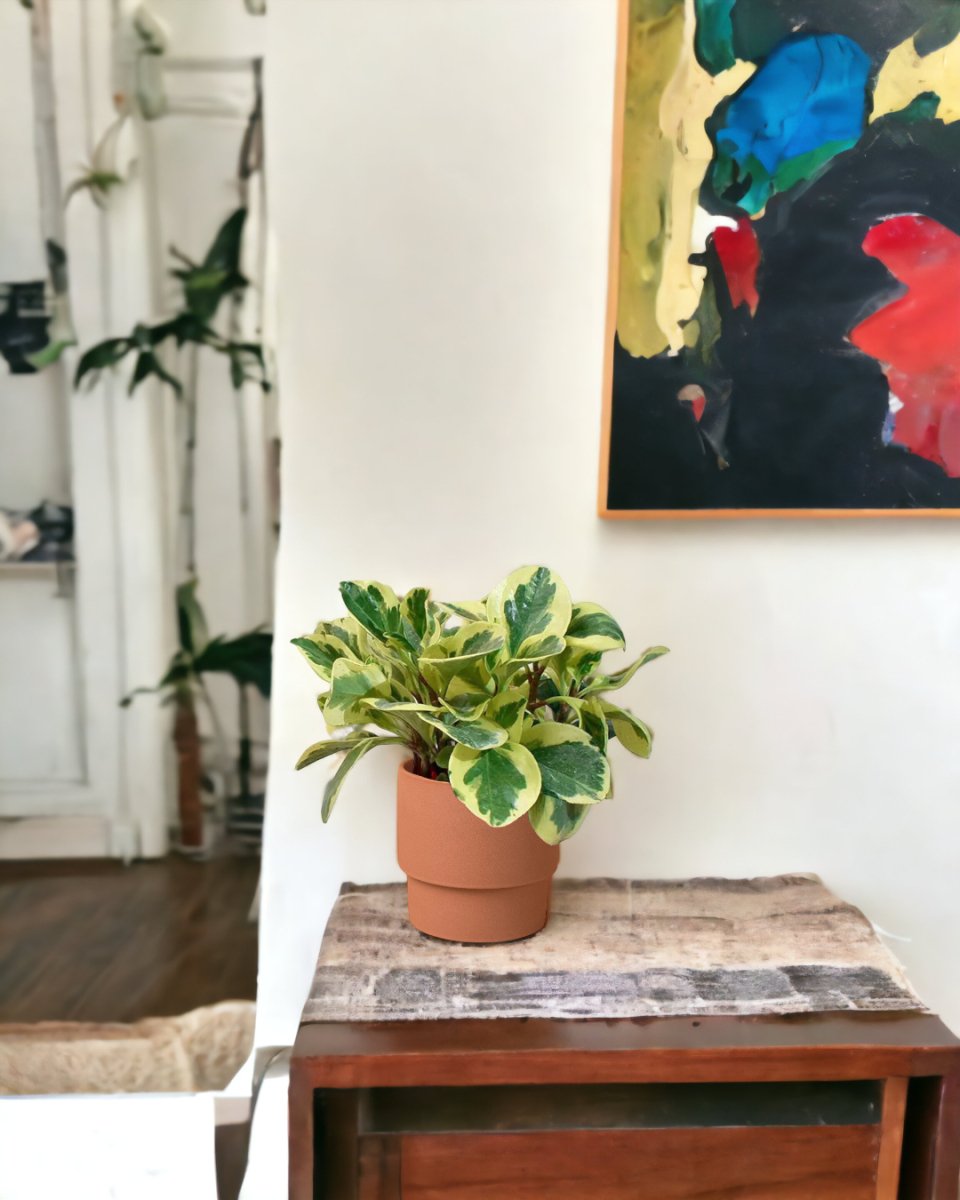 A very fuss-free plant, this Variegated Peperomia Obtusifolia is suitable for medium light conditions and thrives under bright indirect light. Water the plant when the soil has almost dried out, approximately once every week or so. It is important not to leave the plant sitting in water to prevent it from root rot.
