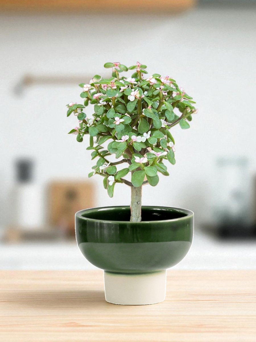 The Pink Jade Bonsai Tree (Crassula ovata) stands out as a delightful variant of the beloved Jade Plant, featuring distinctive pink-hued leaves that introduce an element of elegance to any setting. When caring for this exquisite bonsai, it is recommended to position it in an area with bright, indirect sunlight. To maintain its well-being, ensure that the soil is allowed to dry out between waterings, preventing the risk of overwatering. The use of well-draining soil is paramount for the plant's overall health. This bonsai thrives with adequate sunlight, well-draining soil, and a meticulous watering routine, while it dislikes overwatering, direct sunlight, and temperatures falling below 50°F (10°C). It is important to note that this guidance is grounded in the general characteristics of Jade plants, and specific care requirements for the Pink Jade Bonsai Tree may differ. Always refer to care instructions provided by the nursery or seller for the most accurate guidance.