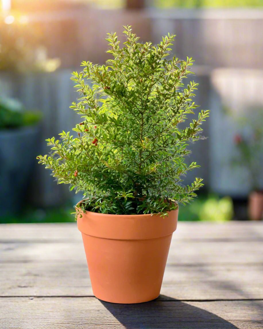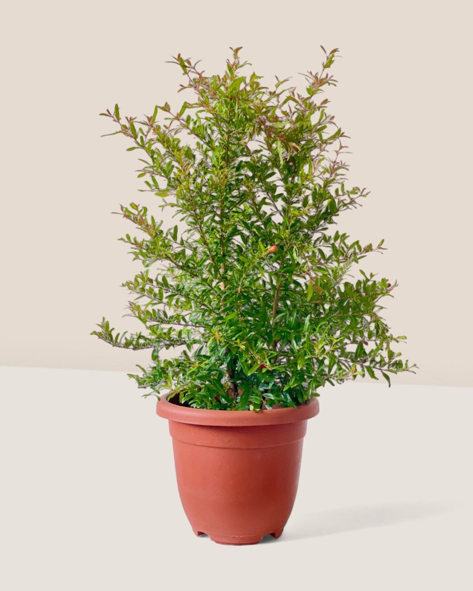 The Pomegranate Plant, scientifically known as Punica granatum, has its origins in the region stretching from Iran to northern India and belongs to the Lythraceae family. This sun-loving plant is a delight for both ornamental and culinary purposes. In Singapore's warm climate, ensure the Pomegranate Plant receives 6-8 hours of direct sunlight daily, with consistently moist soil and good drainage. While moderately easy to care for, attention to watering is crucial to prevent root issues. Pomegranate plants are non-toxic to pets, though caution is advised to prevent excessive ingestion. Enjoy the beauty of its glossy green foliage, the promise of vibrant flowers, and the potential for homegrown pomegranates with this versatile and rewarding plant.