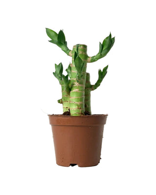 Lucky Bamboo is actually a species from the Dracaena family. They grow well in water and with their long stems they look like a flower or cut leaf arrangement but are actually living plants. Lucky Bamboo is a commonly seen plant around the turn of the lunar year and is considered to represent Growth, Progression, Resilience and Flexibility.