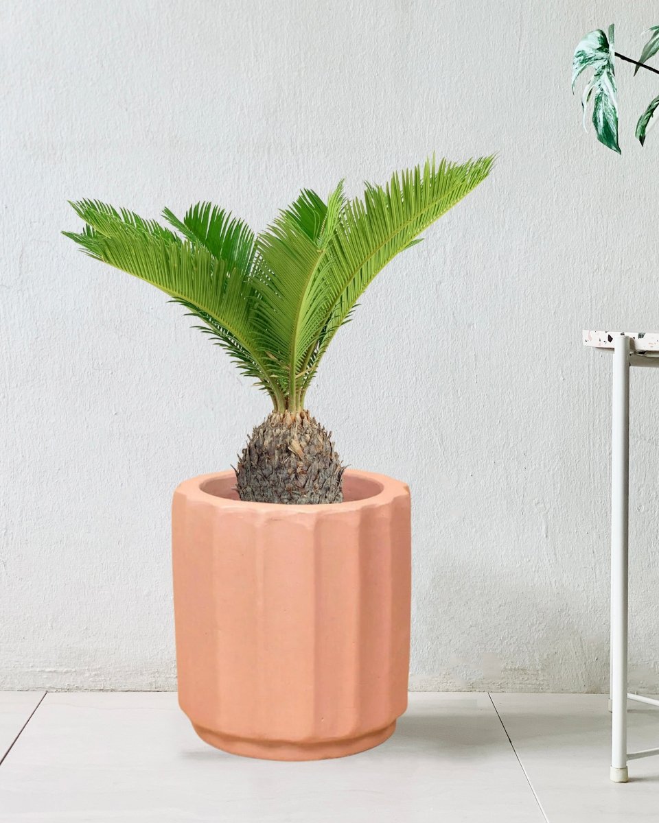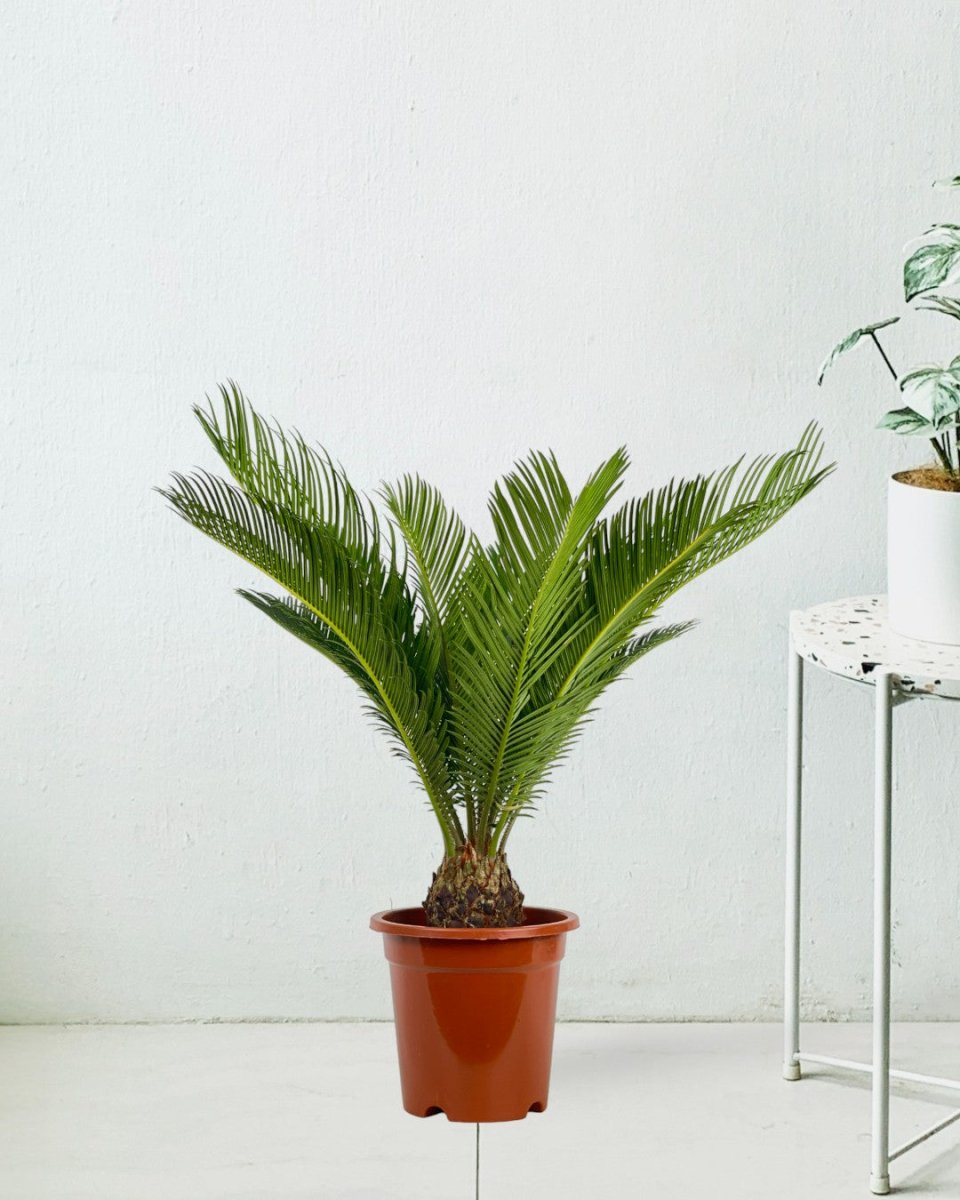 Cycas revoluta, commonly known as the Sago Palm, is a captivating plant with ancient origins, originating from Japan. Despite its name, it is not a true palm but rather a cycad, which is a primitive type of plant. It features a stunning rosette of dark green, glossy fronds that give it a palm-like appearance. This slow-growing plant is a popular choice for adding a touch of the tropics to indoor and outdoor spaces.
