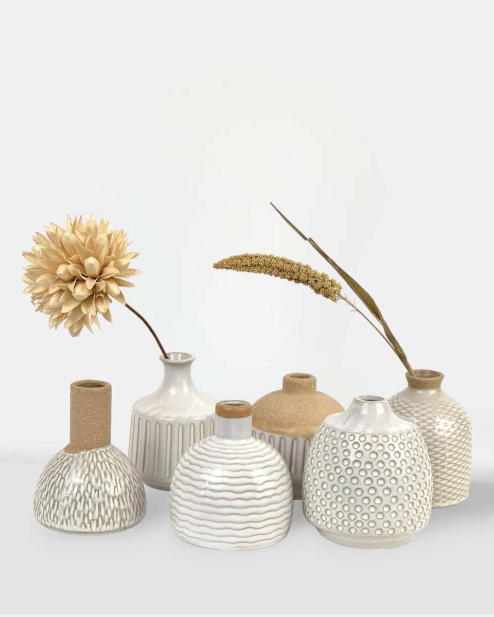 Available in six stunning designs, our Beige Ceramic Vase collection is tailored to showcase the timeless beauty of your favorite flowers.
