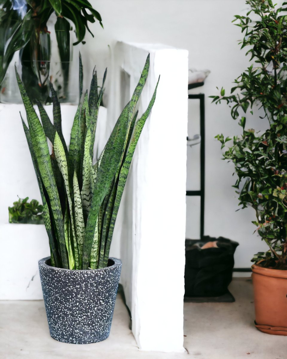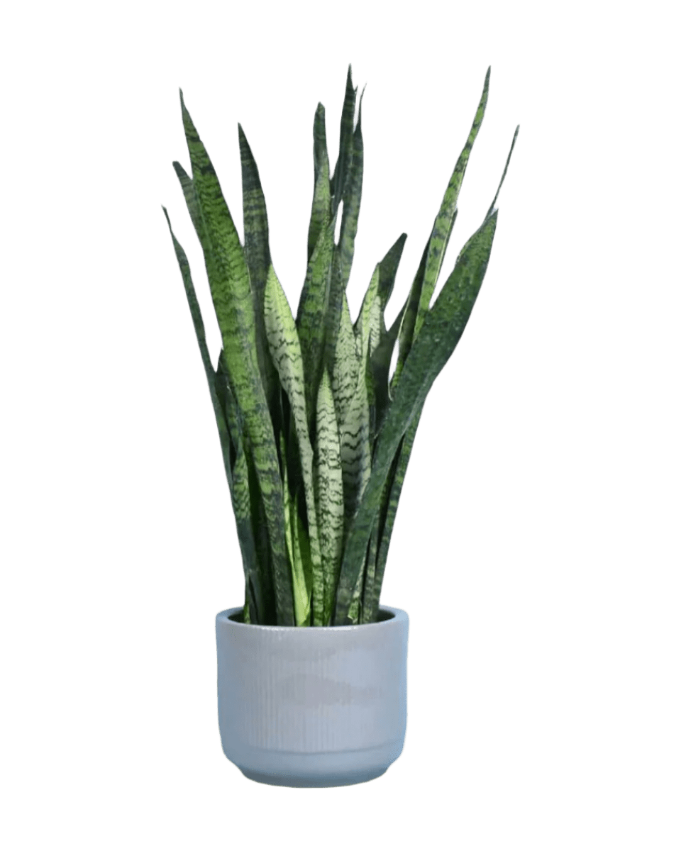 Sansevierias are the among the easiest plants to care for and are actually perfect for beginners or busy plant owners. They tolerate low-light but sufficient lighting condition brings out the colours in the leaves. Like most succulents, snake plants store water in their leaves so it is best to wait for the soil to totally dry out between waterings.