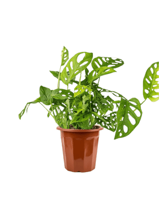 The Swiss Cheese Plant gets its name from its large, heart-shaped leaves that develop lacy holes or fenestrations, making it look like a Swiss cheese. Its leaves are more perforated and delicate than the Monstera deliciosa and the Adansonii is also smaller in size.