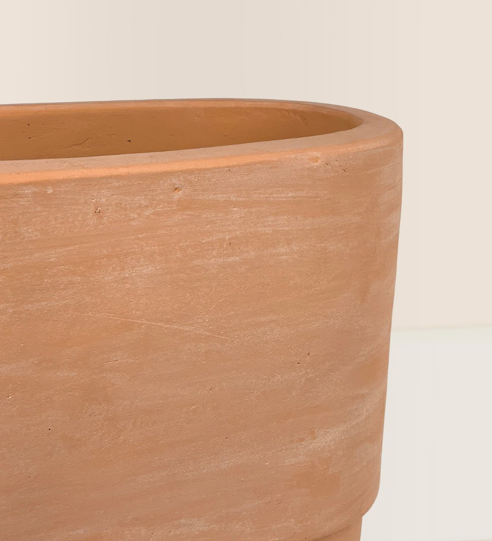 Terracotta is crafted from natural clay fired at lower temperatures than other ceramics, giving it a unique ‘breathable’ quality. This allows both water and a small amount of air to pass through the walls of the pot, helping moisture evaporate from the soil and reducing the risk of root rot.