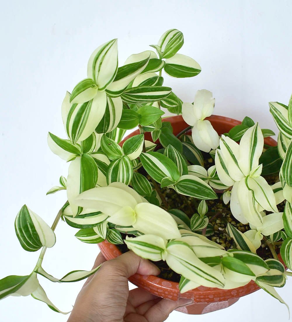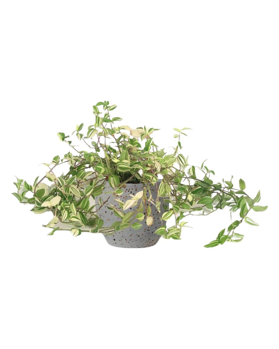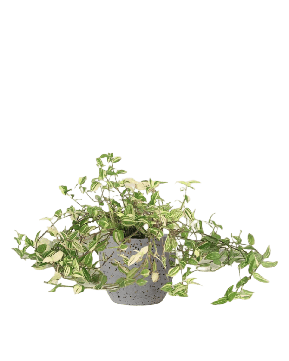 Also known as Inch plant, the Tradescantia fluminensis variegata is a special type of spiderwort plant with white and green stripes pattern in its leaves on upright chunky stems. The lush leaves of this trendy plant are remarkably healthy, strong and plump making it an appealing choice for houseplant lovers.